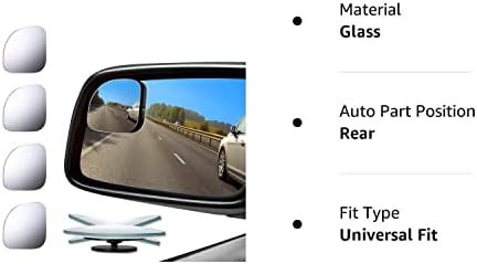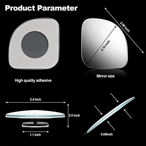 Size details: fan lens radius is 1.97 inch/ 50 mm, base height is 0.59 inch/ 15 mm, lens thickness is 0.08 inch/ 2 mm, a reasonable design can better reduce the blind area; The fan-shaped blind spot mirrors are paired with the side rearview mirror corners to make them more attractive than other shapes