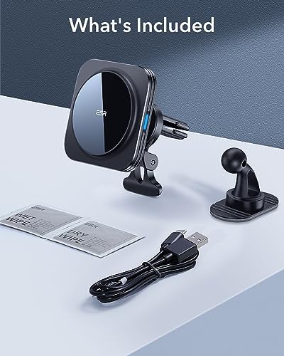 What’s Included: HaloLock Magnetic Wireless Car Charger, air vent clamp, 3.3 ft (1 m) USB-A to USB-C cable, and manual; car charging adapter not included; ONLY compatible with iPhone 15/14/13/12 series phones