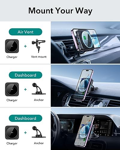 Secure Magnetic Lock: powerful magnets with 1,400 g of holding force and a non-slip silicone ring keep your phone securely in place, even when driving on bumpy roads; an official MagSafe case or ESR HaloLock case is recommended for rough terrain