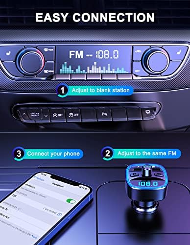 【Easy to Use】Plug this wireless car kit into the cigarette lighter socket, turn your car FM radio to a blank station between 88.1-107.9MHz, and adjust this FM transmitter to the same one; Pair with your phone via Bluetooth, then there you go.