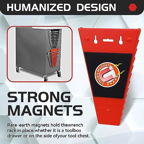 Magnetic wrench holder is only 1 inch 1/8 thick, ensuring that it can fit in most drawers. In addition, due to the presence of magnets, the storage unit will not slide around when you move the toolbox or close the drawer.