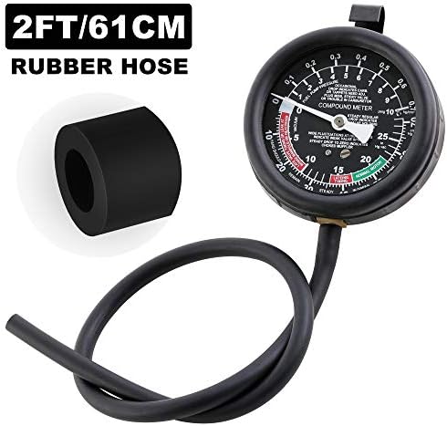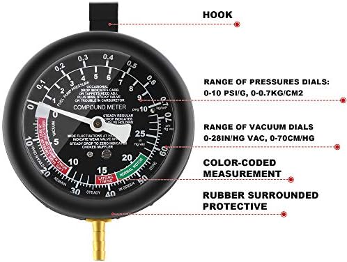 CAR VACUUM TESTER – Also can be used for testing engine vacuum lines, brake assist system, carburetor and intake manifold for leaks, vacuum or pressure loss. Set includes a variety of adapters suitable for most vehicles; Intended for carburetor engines with a mechanical fuel pump operating pressures below 10 PSI (0.7 Bar).