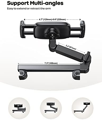 【 Devices Compatibility】The universal headrest tablet mount is suitable for 4.7 – 11″ devices, such as 2022/ 2021 iPad Pro 11, 2022 iPad 10.9/ iPad 10th Generation, iPad Air 5/ 4, iPad Pro 10.5/ 9.7, iPad Mini 6/ 5, Galaxy Tab S8/ S7, Kindle, Fire HD, iPhone 14 Pro Max, 13, 12, 11, Xs, other smartphones and tablets. ❗The max thickness the clamp can fit is 0.67″ ( 17mm). ❗4.7 – 11″ refers to the diagonal length of the tablet screen, the suitable width of screen is 5.5 – 8.6″.