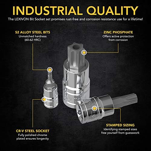 LONGEVITY – Complete rust and corrosion resistance with fully polished, Chrome plated mirror finish sockets and Zinc Phosphate bits treatment.