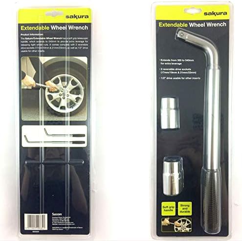 The soft handle extends from 355mm to 540mm to provide extra leverage for releasing tight wheel nuts