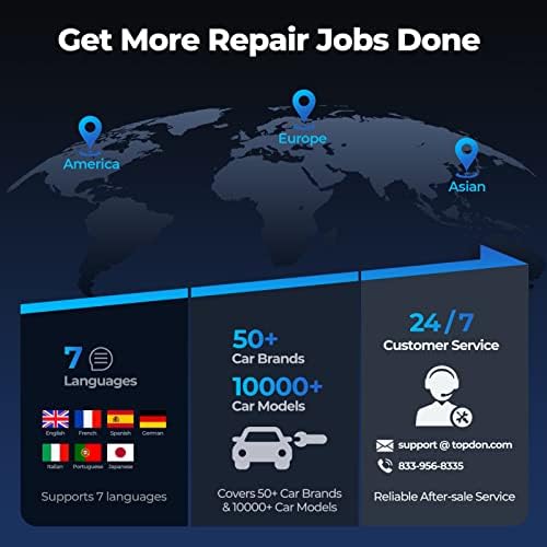 [Wide Compatibility & Multiple Languages] This 2-in-1 OBD2 scanner & battery tester supports full OBD2 diagnosis for 50+ brands, providing greater access to crucial information on even more vehicles. It also supports 7 languages. DTC library can show the DTCs definition directly. (Reach us for compatibility before purchase).